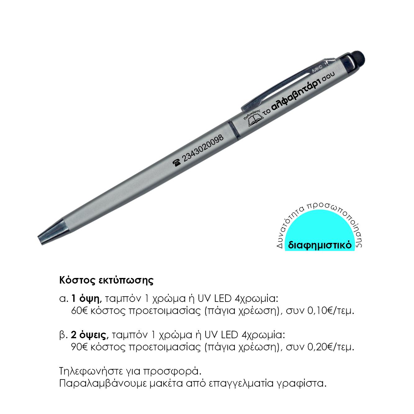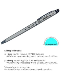 Στυλό- touch pen ασημί 13xØ0,6εκ. Δυνατότητα εκτύπωσης.