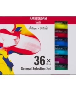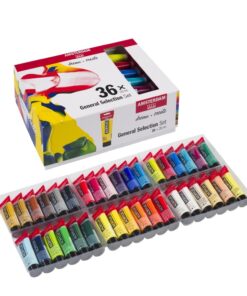 Το σετ Amsterdam Standard Series 36×20ml προσφέρει μια πλούσια και ισορροπημένη παλέτα 36 αποχρώσεων με διαφορετικούς βαθμούς αδιαφάνειας και εξαιρετική φωτεινότητα. Τα ακρυλικά αυτά χρώματα έχουν μεσαίο ιξώδες για ομαλή εφαρμογή, έντονες πινελιές και σατινέ φινίρισμα. Η σύνθεσή τους βασίζεται σε 100% ακρυλική ρητίνη, προσφέροντας ανθεκτική, ελαστική και αδιάβροχη επιφάνεια μετά το στέγνωμα.
