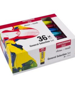Το σετ Amsterdam Standard Series 36×20ml προσφέρει μια πλούσια και ισορροπημένη παλέτα 36 αποχρώσεων με διαφορετικούς βαθμούς αδιαφάνειας και εξαιρετική φωτεινότητα. Τα ακρυλικά αυτά χρώματα έχουν μεσαίο ιξώδες για ομαλή εφαρμογή, έντονες πινελιές και σατινέ φινίρισμα. Η σύνθεσή τους βασίζεται σε 100% ακρυλική ρητίνη, προσφέροντας ανθεκτική, ελαστική και αδιάβροχη επιφάνεια μετά το στέγνωμα.