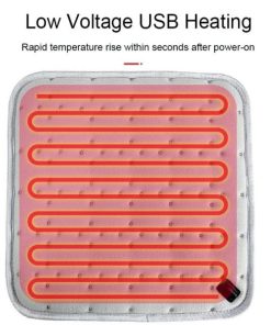 Νικήσαμε το κρύο! Οικονομική και αποτελεσματική λύση ατομικής θέρμανσης, σε σπίτια ή γραφεία που δεν ζεσταίνονται επαρκώς, λόγω ακριβής ενέργειας. Εξοικονομήστε χρήματα, θερμαίνοντας τον εαυτό σας και όχι ολόκληρο το χώρο που βρίσκεστε. Θα το λατρέψετέ! Το θερμαινόμενο μαξιλάρι του καθίσματος θερμαίνεται αμέσως όταν συνδεθεί έτσι ώστε μπορείτε να νιώσετε τη ζεστασιά μέσα σε λίγα λεπτά. Ιδανικό για να παρέχει ζεστασιά στους γοφούς και τους μηρούς τις κρύες μέρες. Ο διακόπτης αφής διατίθεται σε 3 επίπεδα. Πατήστε το διακόπτη για να ρυθμίσετε μεταξύ διαφορετικών επιπέδων, υψηλό: 62, μεσαίο: 55, χαμηλό: 45 και απενεργοποιημένο. ΕΥΚΟΛΗ ΜΕΤΑΦΟΡΑ: Το ύφασμα είναι μαλακό και άνετο, ώστε το μαξιλάρι να διπλώνεται σε κύβο. Κατάλληλο για μεταφορά. Η διάσταση του θερμαινόμενου μαξιλαριού καθίσματος είναι 45 x 45 εκ. Λειτουργεί σε σχεδόν κάθε είδους καρέκλες, ξύλινους πάγκους . Το μαξιλαράκι μπορεί να τοποθετηθεί προς οποιαδήποτε κατεύθυνση, έτσι ώστε τα καλώδια να μπορούν να εξαχθούν από την αριστερή/δεξιά/μπροστινή/πίσω πλευρά για να συνδεθούν στο τροφοδοτικό. Εξοπλισμένο με βύσμα, το προϊόν μπορεί να αντλήσει ισχύ από διάφορες πηγές – power bank, υπολογιστής κ.λπ. Χρώμα: Γκρι, Μέγεθος: 45 x 45 cm Βάρος: 350 g Τάση : 5 V Ρεύμα: Ισχύς: 100 W