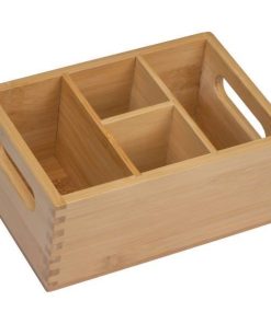 Θήκη για μαχαιροπίρουνα από μπαμπού με θήκη για χαρτοπετσέτες (10 x 10 εκ.) και άλλες θήκες για μαχαιροπίρουνα ή ξυλάκια, αλατοπίπερο κτλ. Διαστάσεις: 18x12x8εκ.