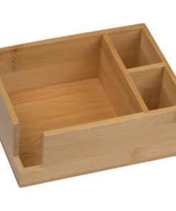 Θήκη για μαχαιροπίρουνα από μπαμπού με θήκη για χαρτοπετσέτες (10 x 10 εκ.) και άλλες θήκες για μαχαιροπίρουνα ή ξυλάκια, αλατοπίπερο κτλ. Διαστάσεις: 16x12x6εκ.