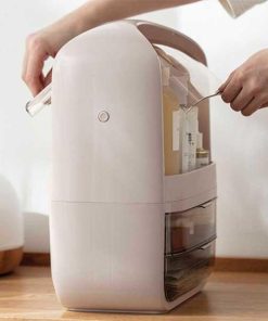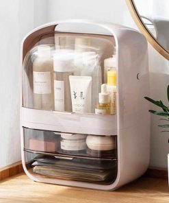 τονερ και κρέμες και με 2 συρτάρια για κραγιόν, πινέλα, σκιές, πούδρες ακόμη και κοσμήματα,