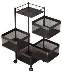 Τρόλεϊ αποθήκευσης μαύρο με 4 θέσεις – 1 ράφι Υ78,5x27x27εκ.