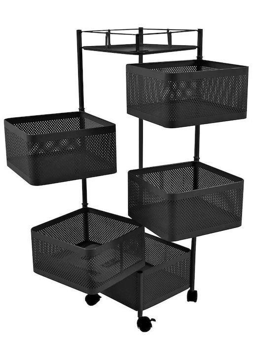 Τρόλεϊ αποθήκευσης μαύρο με 5 θέσεις – 1 ράφι Υ90x27x27εκ.