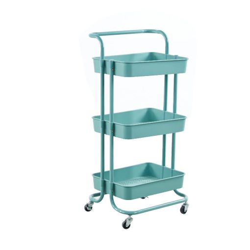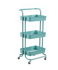 Τρόλεϊ- καλάθι, Υ87x45x37 εκ., με 3 θήκες αποθήκευσης μπλε βεραμάν