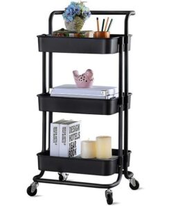 Τρόλεϊ- καλάθι, Υ87x45x37 εκ., με 3 θήκες αποθήκευσης, μαύρο