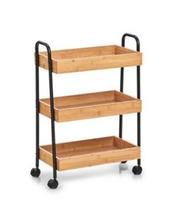 Τρόλεϊ μεταλλικό Nextdeco 3 θέσεων δίσκοi μπαμπού 49×28,5xY70εκ.
