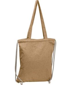 Τσάντα από ανακυκλωμένο βαμβάκι με μακρύ χερούλι και ιμάντες πλάτης μπεζ Υ42×37,5×3εκ. Δυνατότητα εκτύπωσης