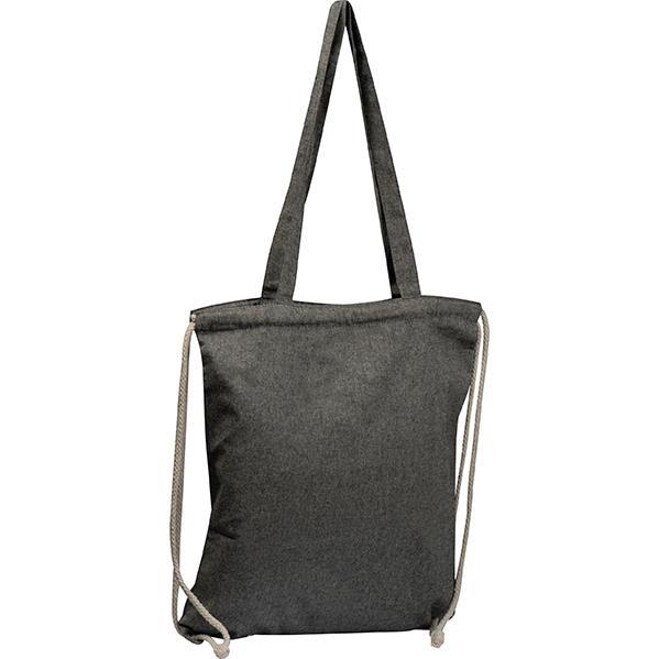 Τσάντα από ανακυκλωμένο βαμβάκι με μακρύ χερούλι και ιμάντες πλάτης μαύρη Υ42×37,5×3εκ. Δυνατότητα εκτύπωσης