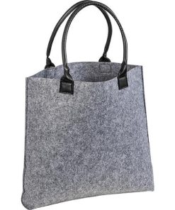 Τσάντα χειρός από τσόχα γκρι, με χερούλια δερματίνης Υ41,5×43,5×9εκ.
