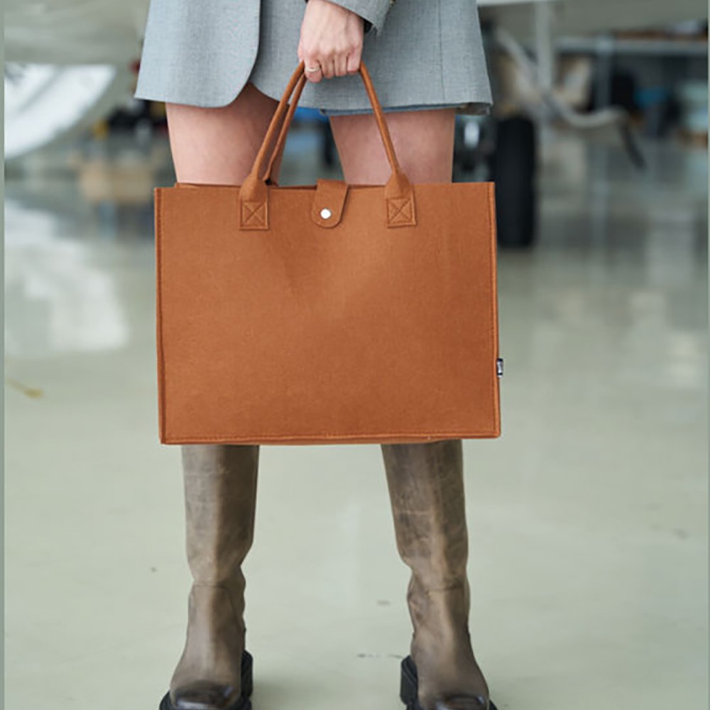 Τσάντα από τσόχα κατασκευασμένη από ανακυκλωμένο PET (RPET) με μεγάλο πτυσσόμενο πάτο, προσφέροντας άφθονο χώρο στο εσωτερικό.