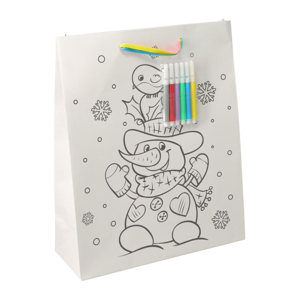 Τσάντα χριστουγεννιάτικη για ζωγραφική με 6 μαρκαδόρους Χιονάνθρωπος Υ23×18×10εκ.