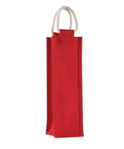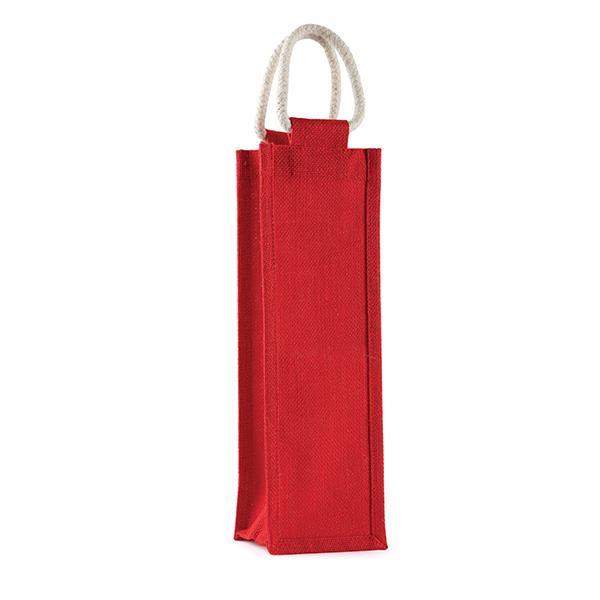 Τσάντα για μπουκάλι από φυσική γιούτα σε κόκκινο χρώμα.