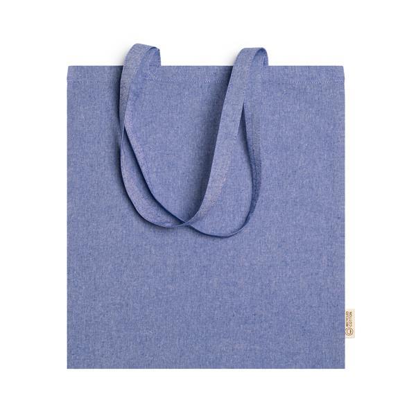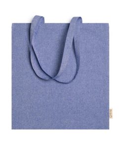Τσάντα με μακρύ χερούλι, φτιαγμένη από ανακυλωμένο βαμβάκι. Ιδανική για ψώνια. Χρώμα: μπλε Διαστάσεις 38×42εκ. Δυνατότητα προσωποποίησης για διαφημιστικό, δείτε φωτογραφία.