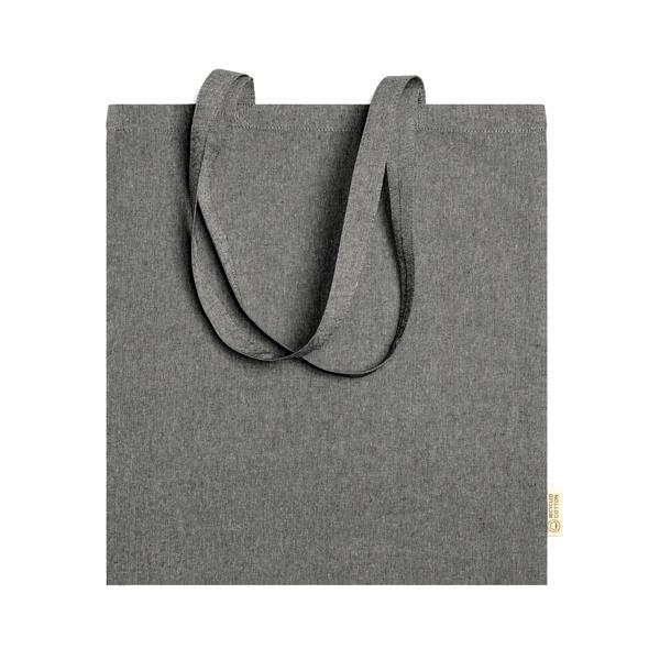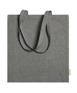 Τσάντα με μακρύ χερούλι, φτιαγμένη από ανακυλωμένο βαμβάκι. Ιδανική για ψώνια. Χρώμα: μαύρο Διαστάσεις 38×42εκ. Δυνατότητα προσωποποίησης για διαφημιστικό, δείτε φωτογραφία.