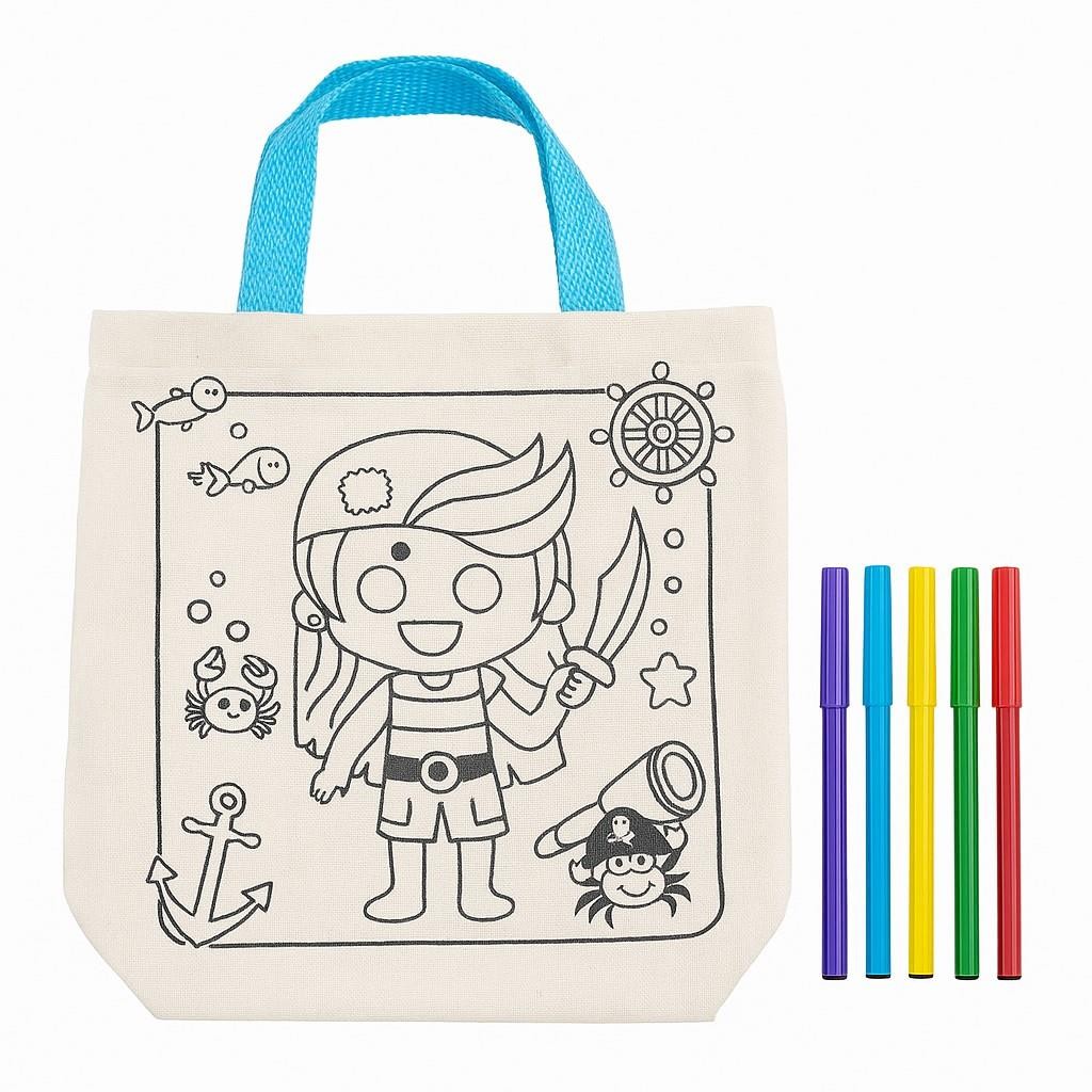Τσάντα non wooven λευκή για ζωγραφική πειρατής με 6 μαρκαδόρους Υ21×21,5×0.3εκ.
