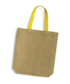 Τσάντα, Y38x8x38εκ από γιούτα/λινάτσα με κίτρινες λαβές