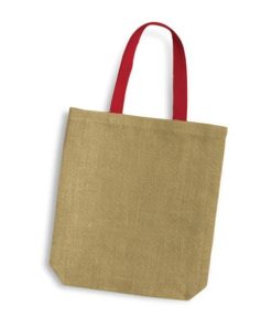 Τσάντα, Y38x8x38εκ από γιούτα/λινάτσα με κόκκινες λαβές