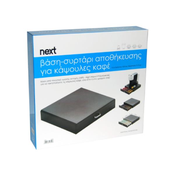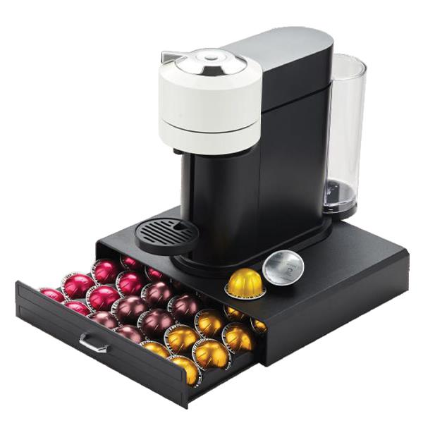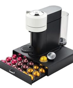 Βάση-Συρτάρι Αποθήκευσης για Κάψουλες από πλαστικό. Εξασφαλίστε περισσότερο χώρο και οργανώστε την κουζίνα σας. Στο συρτάρι μπορούν να χωρέσουν έως 30 κάψουλες Nespresso, είτε 30κάψουλες Vertuo είτε 30 K-Cups. Διαστάσεις: Υ6.5×34.2×32.5εκ.