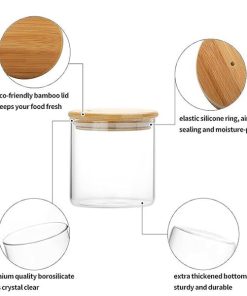 Βάζο αποθήκευσης γυάλινο με ξύλινο κάπακι Υ10×8,5εκ
