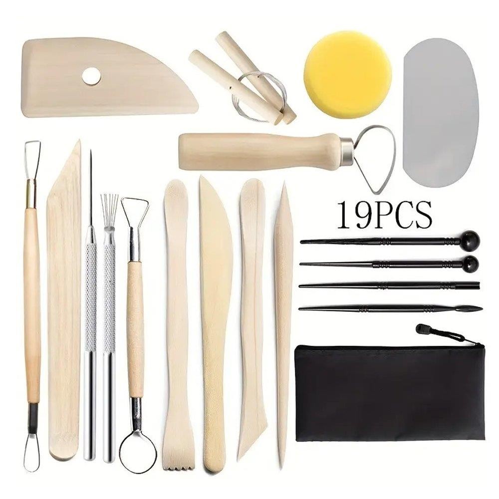 Ξύλινα εργαλεία πηλού σετ 19 τεμ.