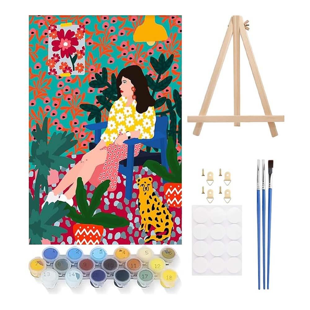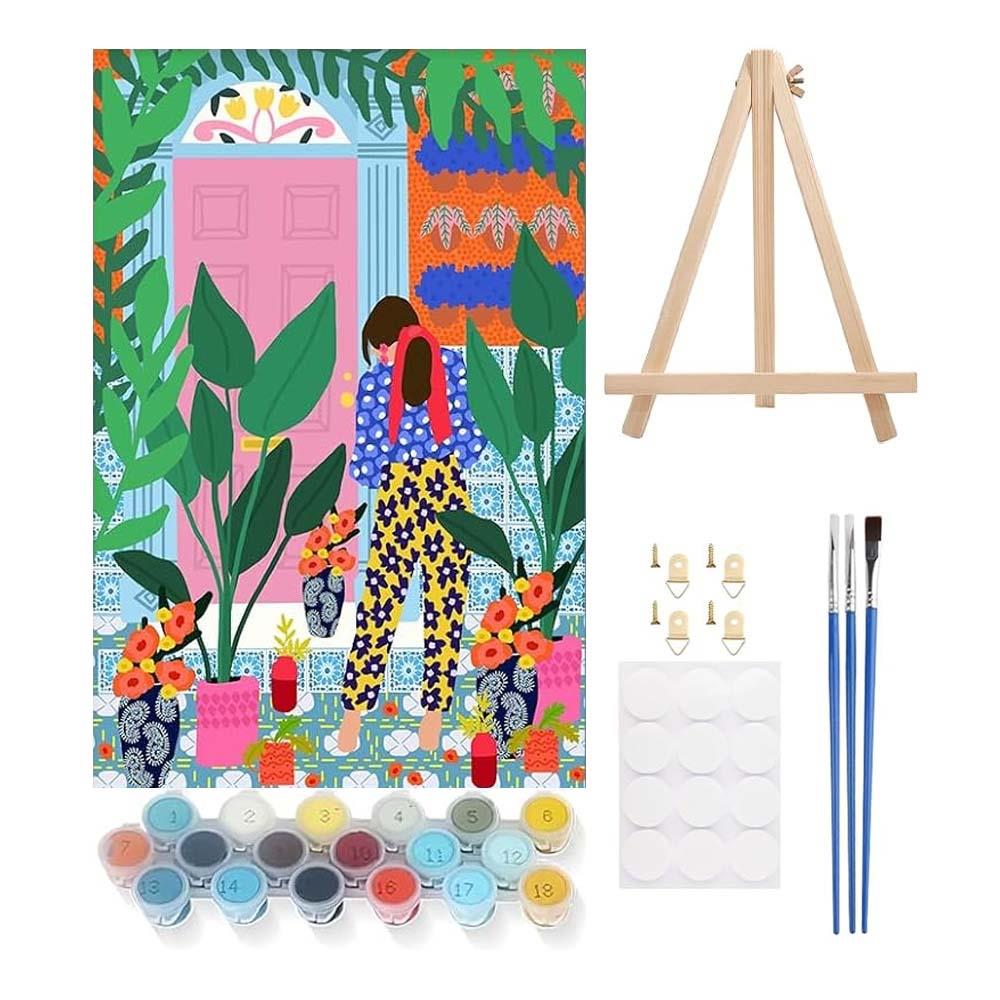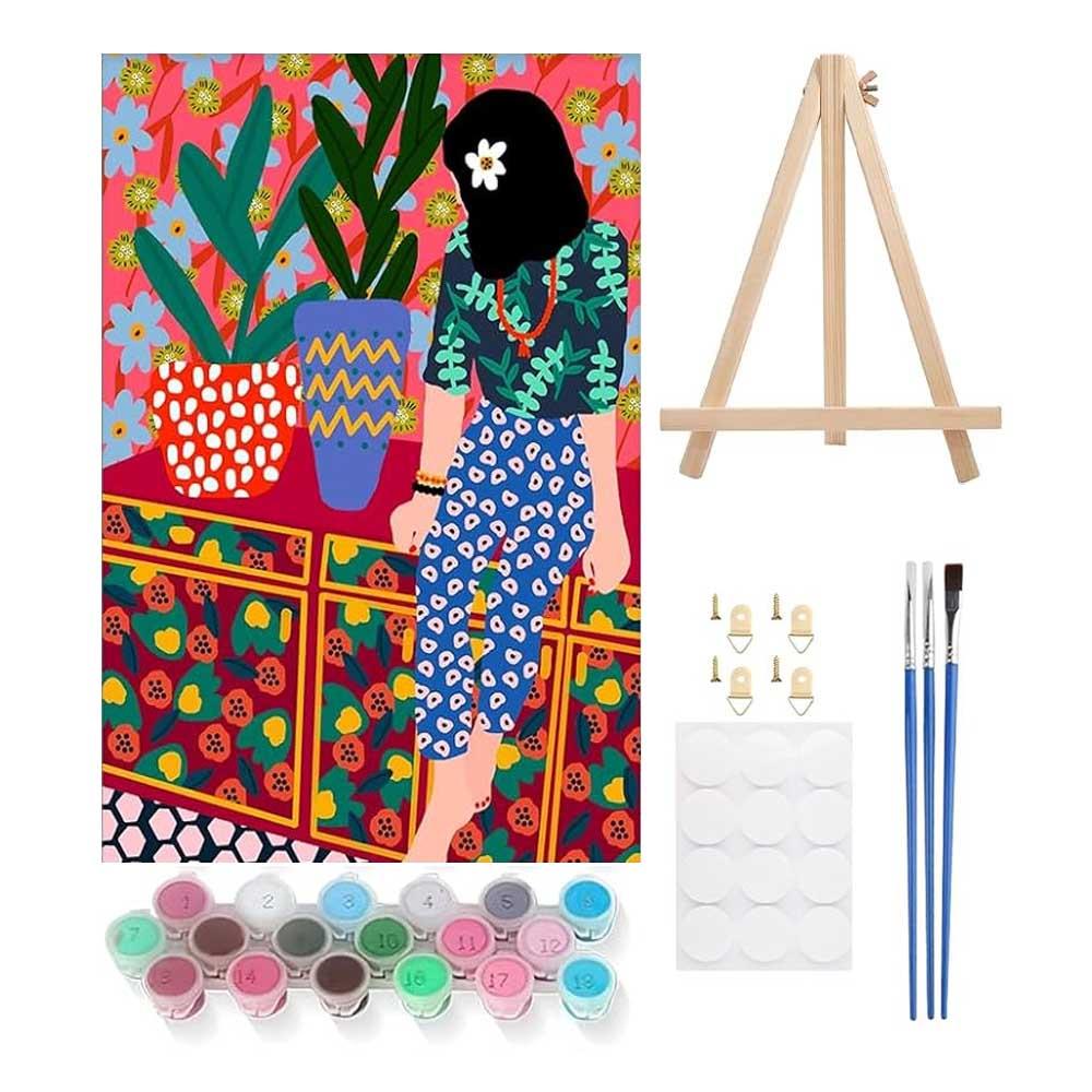 Διακοσμητικό σετ ζωγραφικής με αριθμούς για παιδιά και ενήλικες με θέμα “γυναίκες σε εσωτερικούς χώρους με φυτά”, ιδανικό για δημιουργική απασχόληση και μοντέρνα διακόσμηση τοίχου.