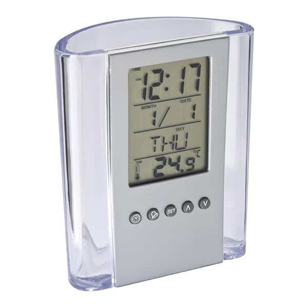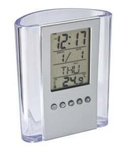 Μολυβοθήκη ακρυλική με ρολόι, ημερολόγιο και θερμόμετρο