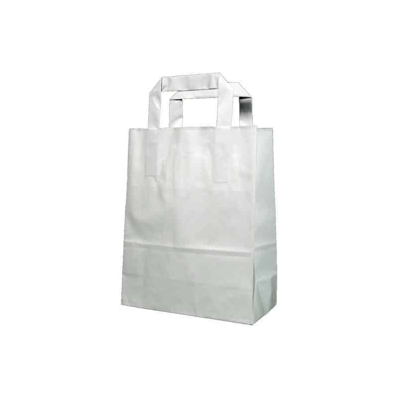 Next χάρτινη τσάντα άσπρη με πλακέ χερούλι Υ22x18x9εκ. Δυνατότητα εκτύπωσης