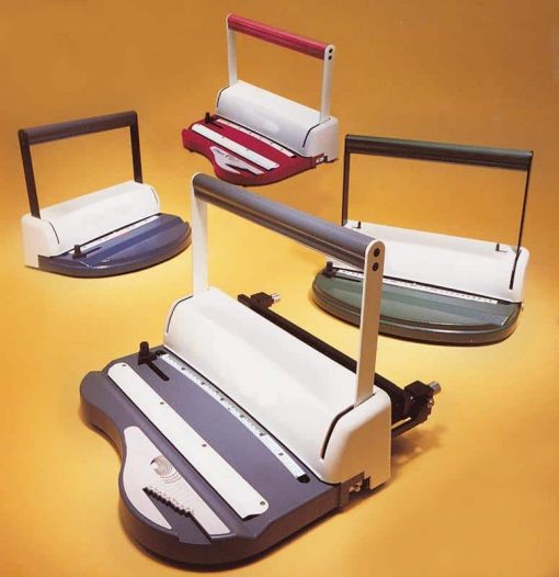 Μηχανή βιβλιοδεσίας μεταλλικού σπιράλ 2:1, 9/16΄’ εώς 1΄’ (έντυπο από 100-200 φύλλα 80γρ.)Τρυπάνε τα φύλλα χειροκίνητα (εώς 12 φύλλα 80 γρ.Α4 τη φορά) και κλείνουν το μεταλλικό σπιράλ. Κατάλληλες για φωτοαντιγραφικά κέντρα, γραφεία, επιχειρήσεις, σχολεία, φροντιστήρια.
